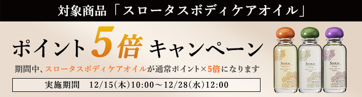 今月のポイント5倍対象商品は【店販用スロータスボディケアオイル3種】でございます。