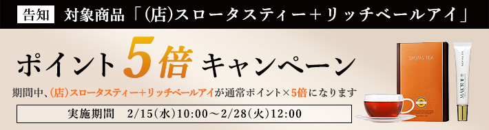【企画】今月のポイント5倍対象商品は【スロータスティー】【MAJORリッチヴェールアイ】でございます。