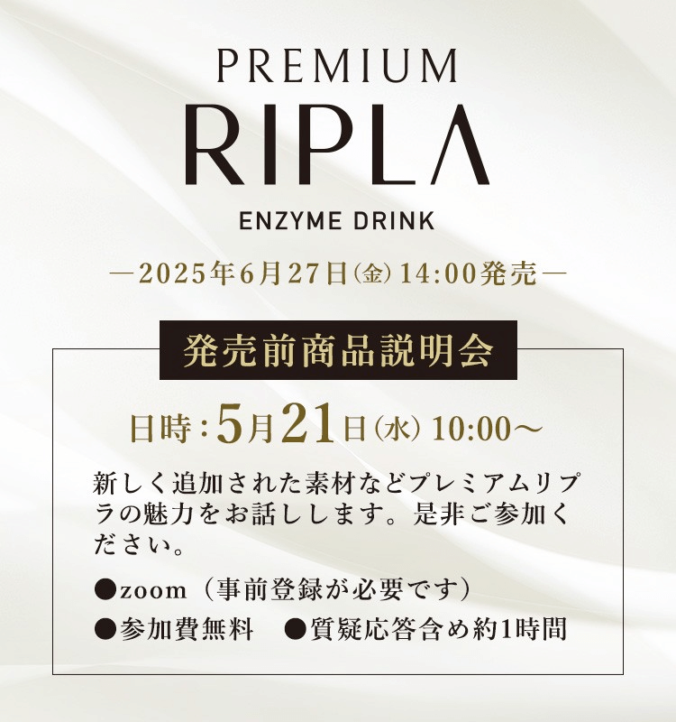 こんにちは!エクシーズジャパンです(*^^*) 今回のメルマガでは、植物性発酵飲料の第三弾✨限定品のPREMIUM RIPLA✨発売前セミナーのご案内や公式LINEの設定について他情報盛りだくさんです。是非最後までご覧ください。