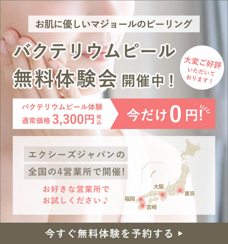 低コストでシンプルな施術、導入のしやすさが魅力のバクテリウムピールを、今回はサロン関係者さま限定で無料体験していただけるチャンスをご用意しました。