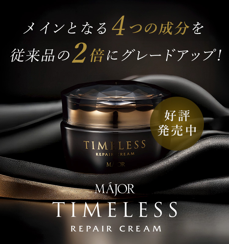 メインとなる4つの成分が2倍に!数量限定タイムレスリペアクリーム好評発売中!