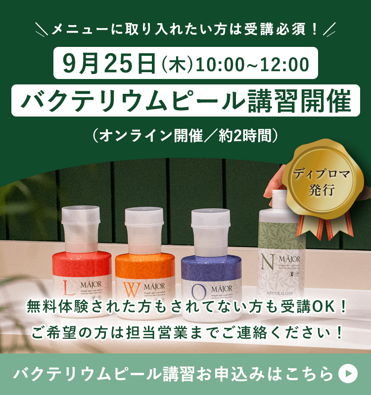 バクテリウムピールの施術は特殊な技術も必要なく習得のハードルが低いと好評です♪