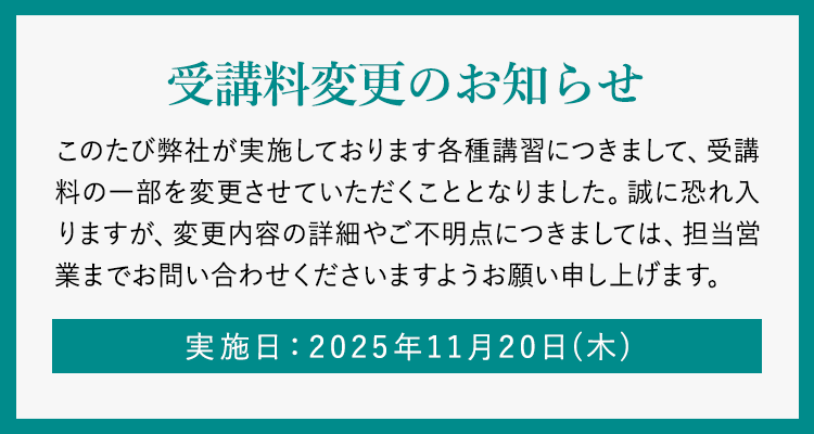 2025年11月20日(木)より、講習料金を一部引き上げさせていただくこととなりました。