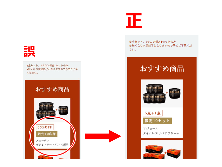 タイムレスリペアクリームの画像にスロータスボディの割引内容を表示しておりました。